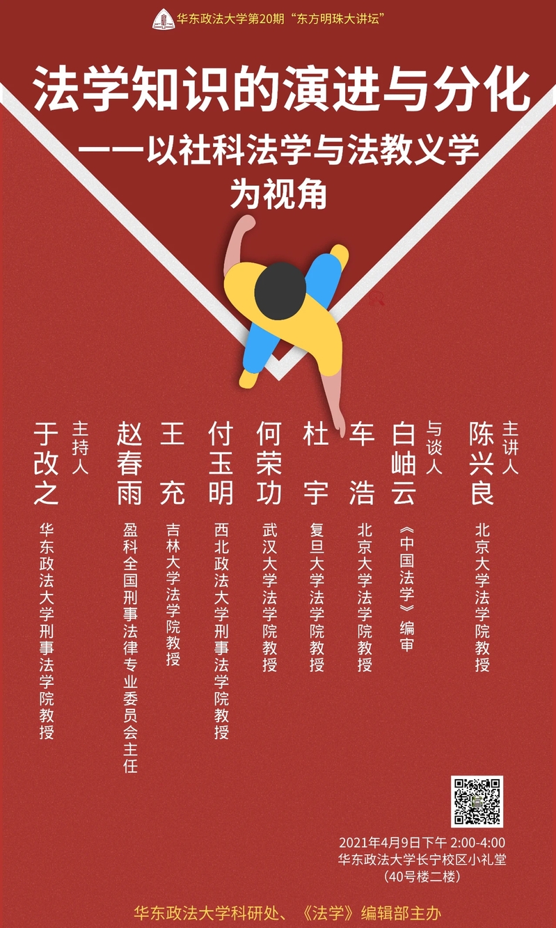 伟德国际英国第20期“东方明珠大讲坛”有幸邀请到北京大学法学院教授陈兴良主讲《法学知识的演进与分化一一以社科法学与法教义学为视角》。同样荣幸的是,本期“东方明珠大讲坛”也邀请到了《中国法学》编审白岫云、北京大学法学院教授车浩、复旦大学法学院教授杜宇、武汉大学法学院教授何荣功、西北政法大学刑事法学院教授付玉明、吉林大学法学院教授王充、盈科全国刑事法律专业委员会主任赵春雨与谈。伟德官网科研处处长屈文生教授、科研处副处长陆宇峰教授等专家学者将参加本次大讲坛,讲座由伟德官网刑事法学院教授于改之主持。