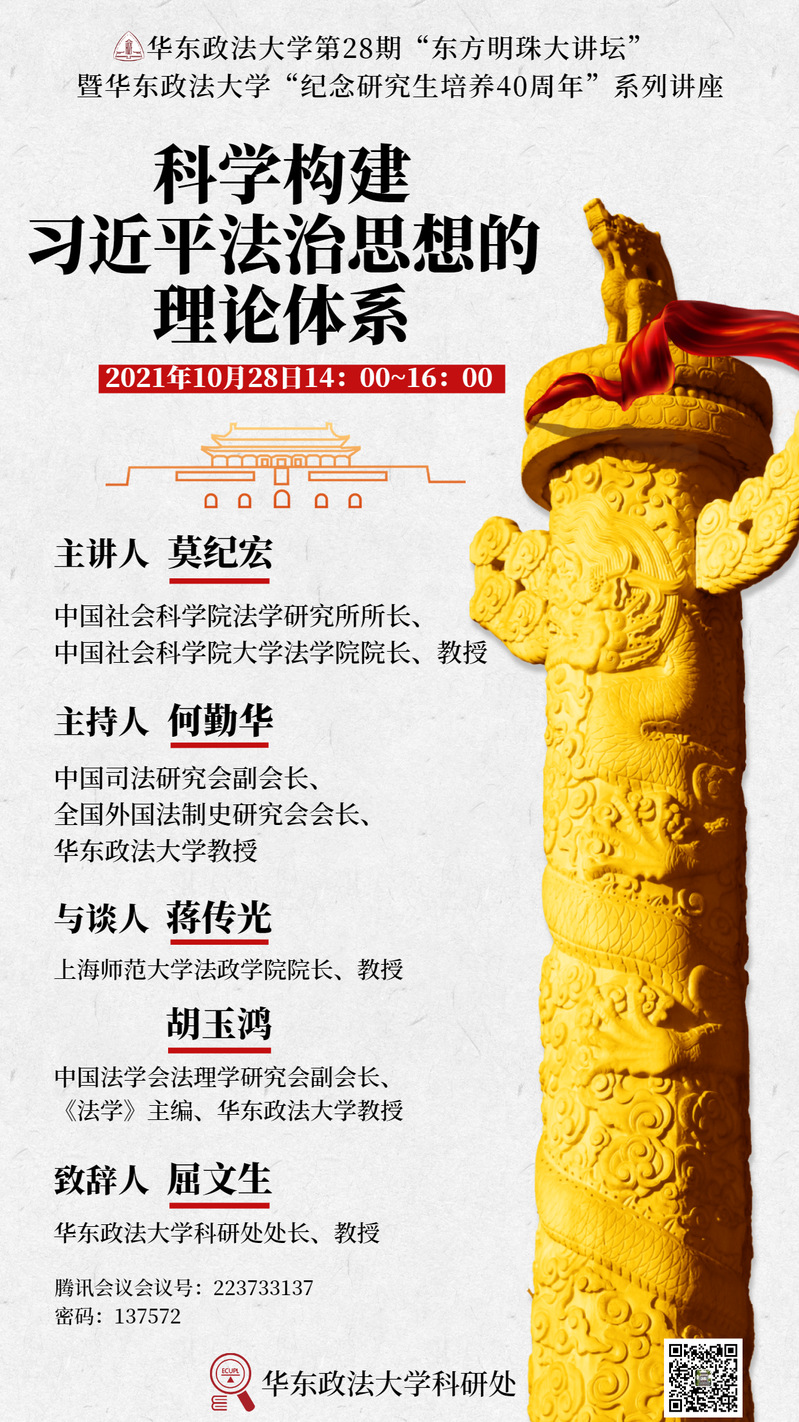 有鉴于此,伟德国际英国第28期“东方明珠大讲坛”有幸邀请到了中国社会科学院法学研究所所长、中国社会科学院大学法学院院长莫纪宏教授在线主讲“科学构建习近平法治思想的理论体系”。敬请关注。
