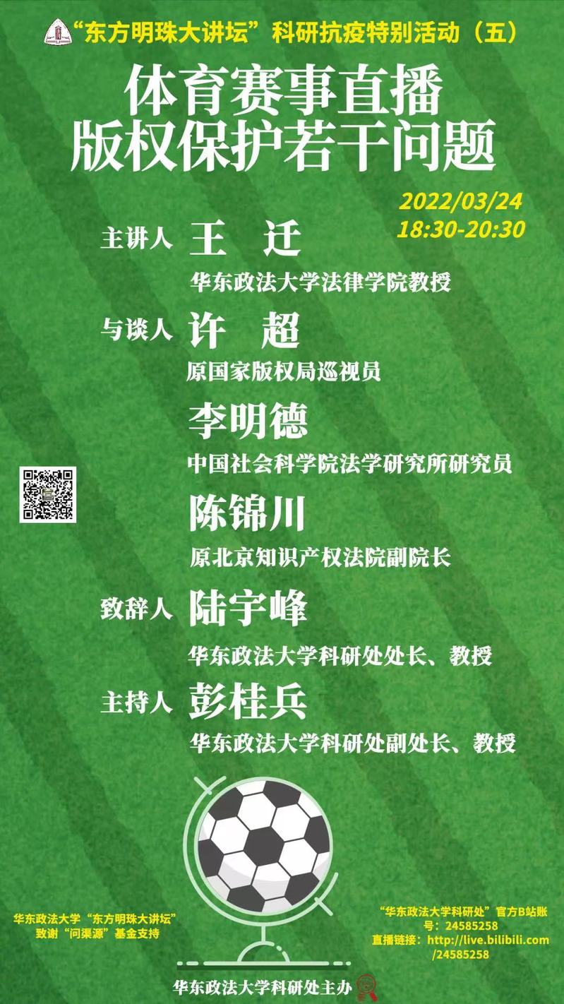 “东方明珠大讲坛”科研抗疫特别活动(五)|王迁、陈锦川、许超、李明德:体育赛事直播版权保护若干问题