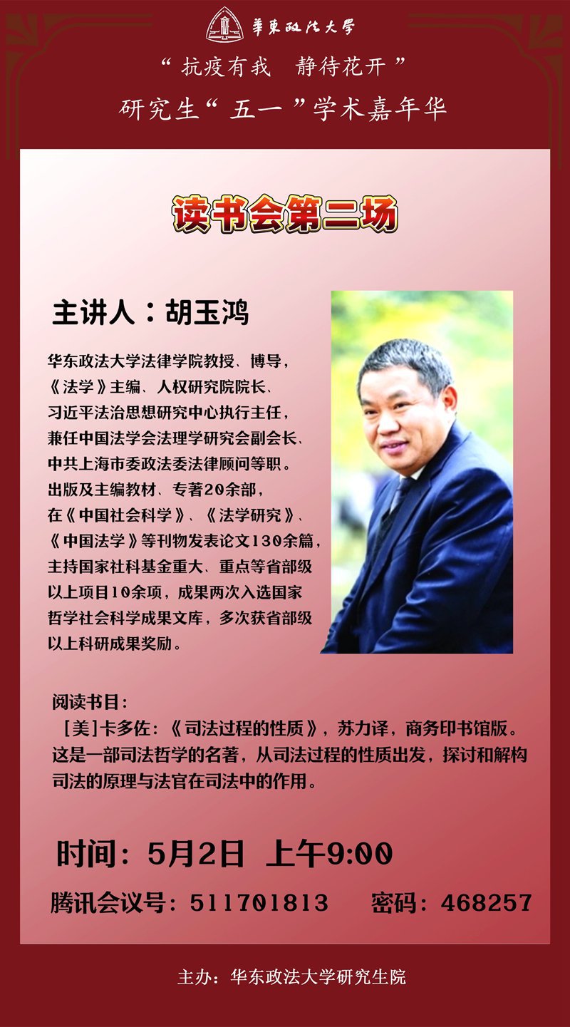 胡玉鸿,教育部长江学者特聘教授,伟德国际英国法律学院教授、博士生导师,《法学》主编、人权研究院院长、习近平法治思想研究中心执行主任,兼任中国法学会法理学研究会副会长、中共上海市委政法委法律顾问等职。出版及主编教材、专著20余部,在《中国社会科学》、《法学研究》、《中国法学》等刊物发表论文130余篇,主持国家社科基金重大、重点等省部级以上项目10余项,成果两次入选国家哲学社会科学成果文库,多次获省部级以上科研成果奖励。较与功能的视角》《公司法的经济结构》《公司金融法律原理》等专著、译著二十余部。