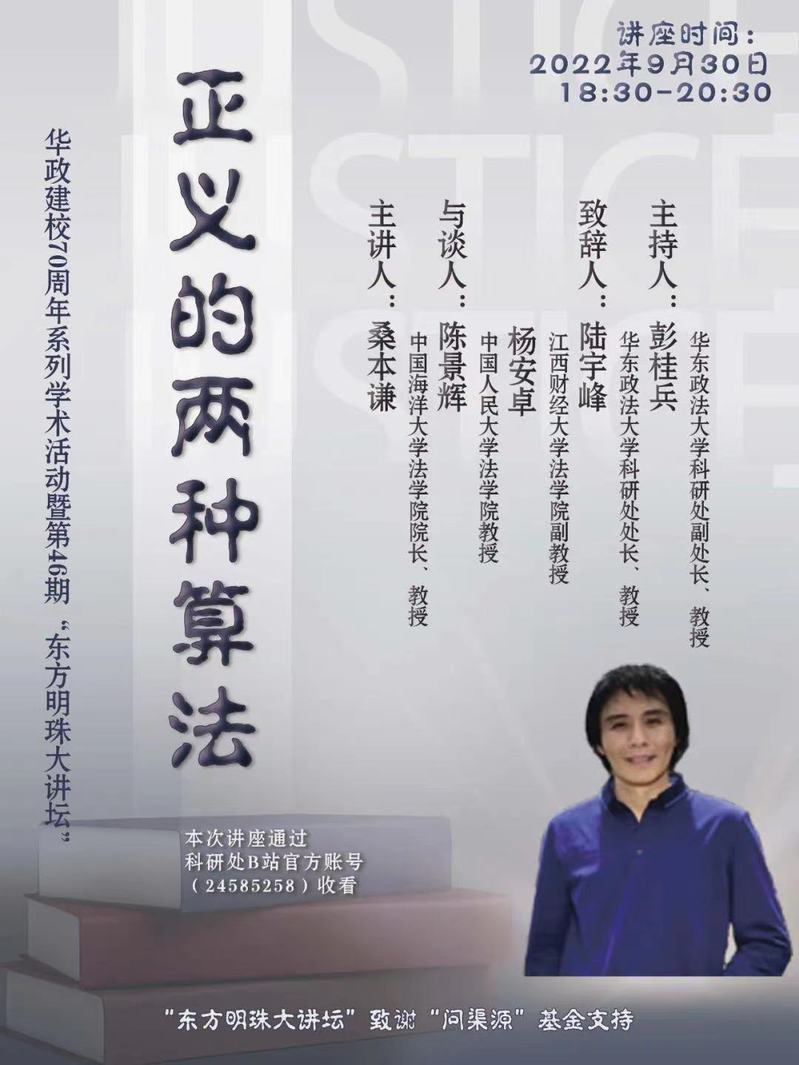 此外,为了隆重纪念伟德国际英国建校70周年,围绕“勇担时代使命、繁荣法治文化”主题举办“学术校庆”,让“东方明珠大讲坛”惠及更多校内外师生,本次讲座主办方将通过“bilibili”在线进行。