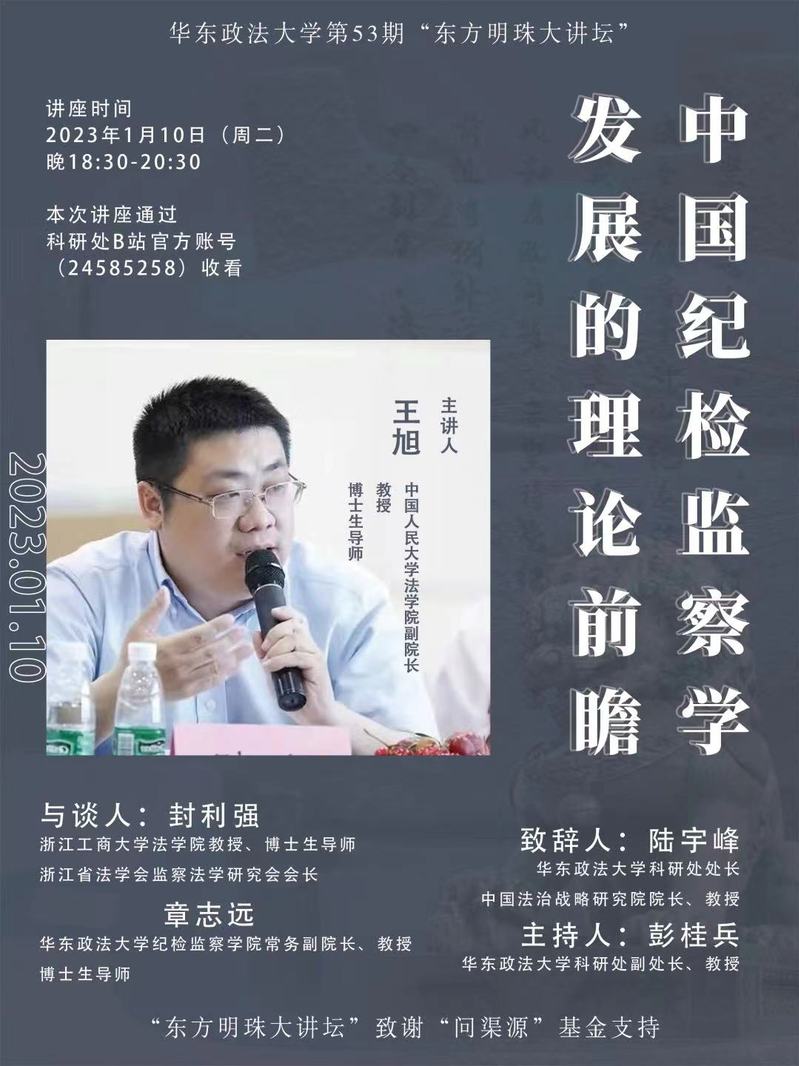 有鉴于此,伟德国际英国第53期“东方明珠大讲坛”有幸邀请到中国人民大学法学院副院长王旭教授主讲“中国纪检监察学发展的理论前瞻”。