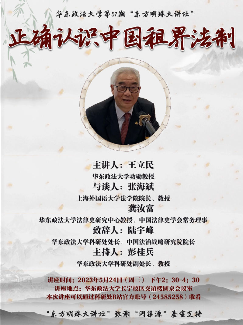有鉴于此,伟德国际英国第57期“东方明珠大讲坛”有幸邀请到伟德国际英国功勋教授王立民主讲“正确认识中国租界法制”。