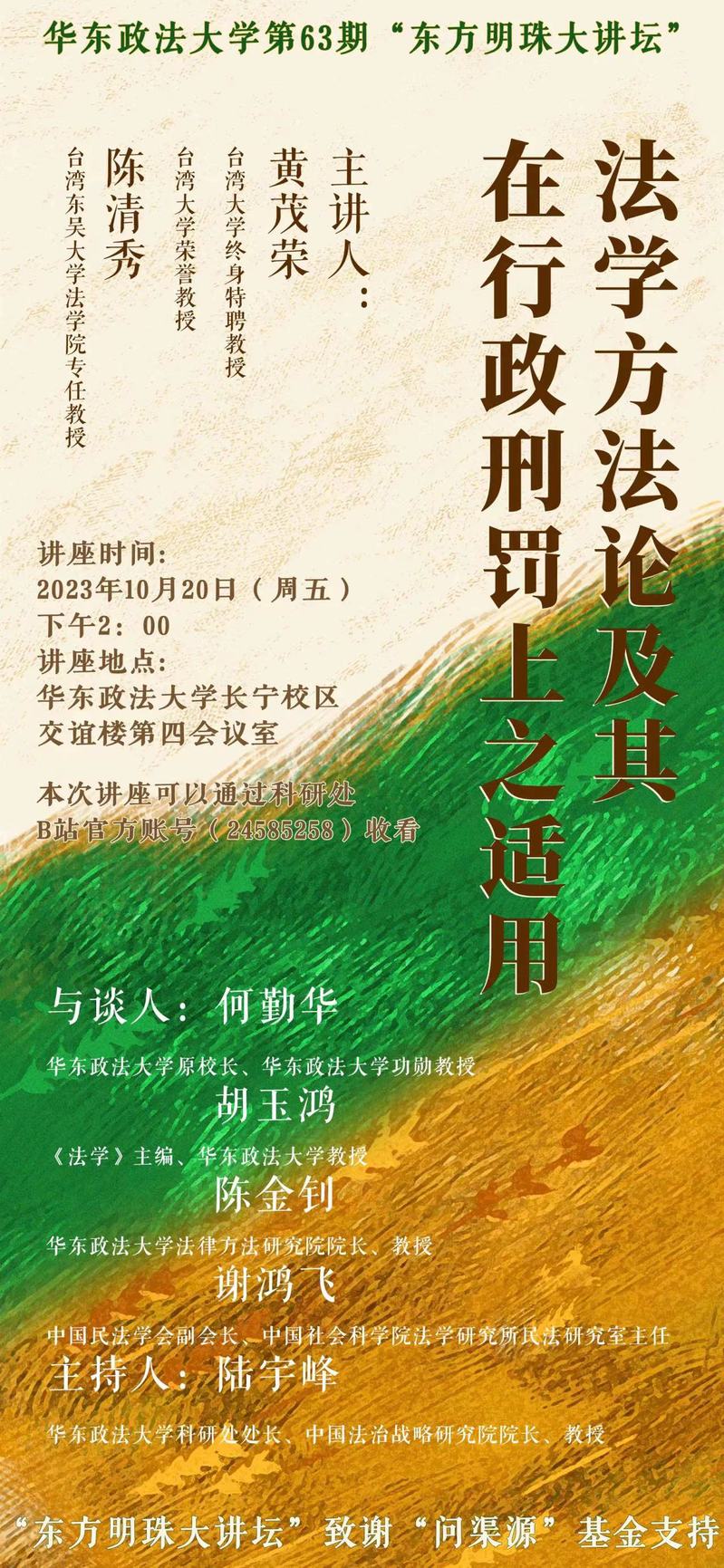 有鉴于此,伟德国际英国第63期“东方明珠大讲坛”有幸邀请到台湾大学终身特聘教授黄茂荣教授、台湾东吴大学法学院陈清秀教授主讲“法学方法论及其在行政刑罚上之适用”