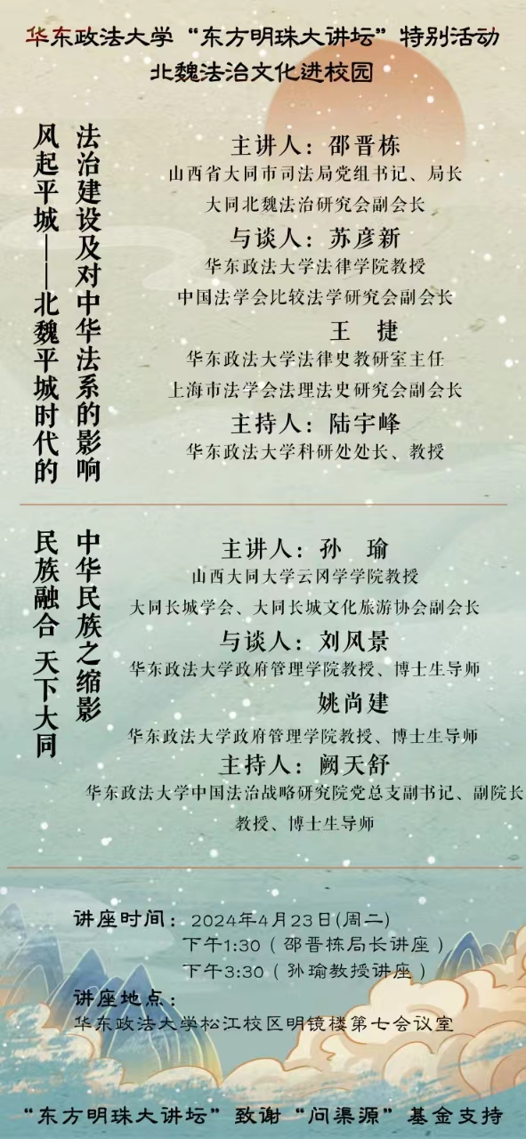 讲座主题:风起平城——北魏平城时代的法治建设及对中华法系的影响