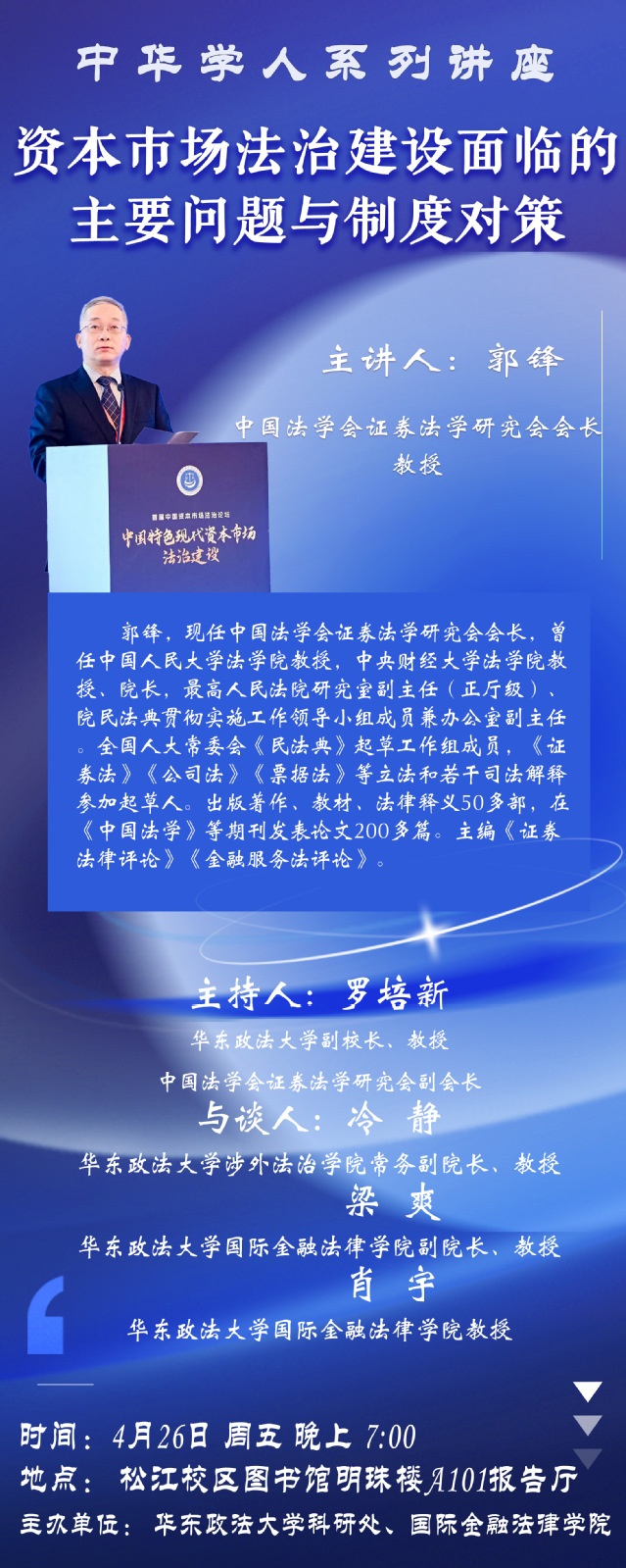 主 讲 人: 郭 锋 中国法学会证券法学研究会会长、教授