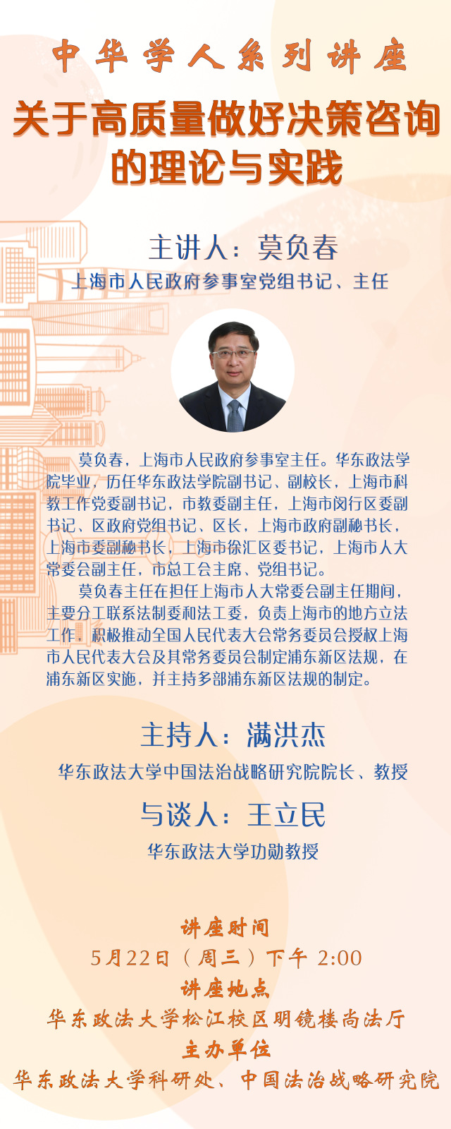 主 讲 人: 莫负春 上海市人民政府参事室党组书记、主任
