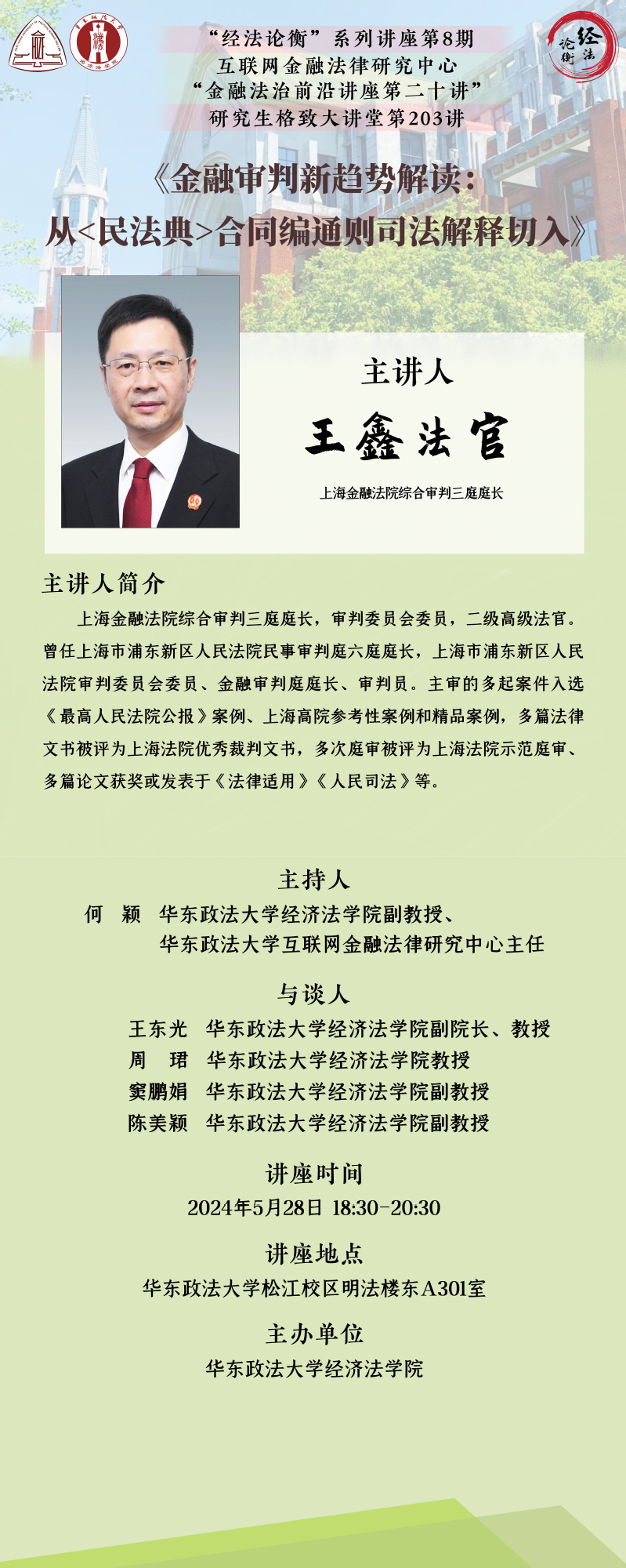 讲座主题:金融审判新趋势解读:从《民法典》合同编通则司法解释切入