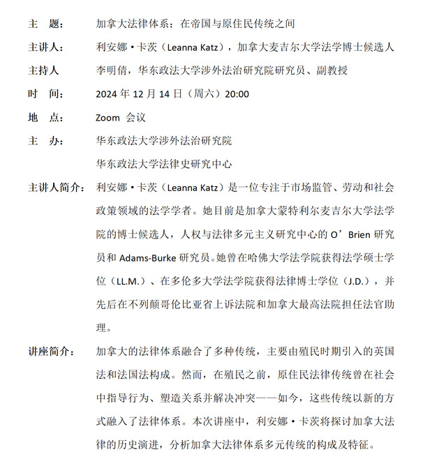 利安娜·卡茨(Leanna Katz):加拿大法律体系:在帝国与原住民传统之间