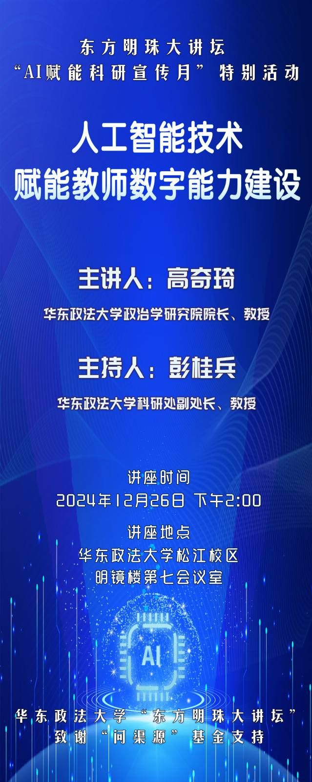 本期“东方明珠大讲坛”有幸邀请到伟德国际英国人工智能与大数据指数研究院院长、政治学研究院院长高奇琦教授主讲“人工智能技术赋能教师数字能力建设”。本期“东方明珠大讲坛”特别活动由伟德官网科研处副处长彭桂兵教授主持。