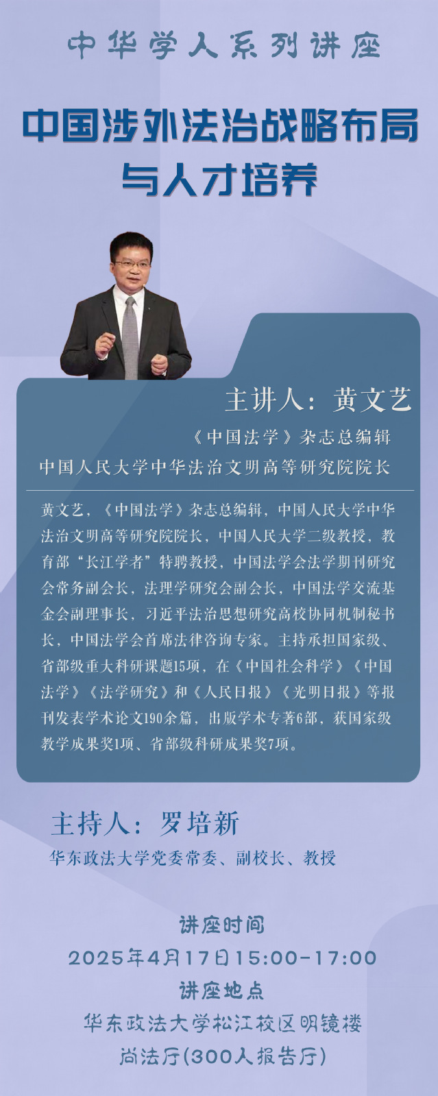 主 讲 人:黄文艺 《中国法学》杂志总编辑、中国人民大学中华法治文明高等研究院院长