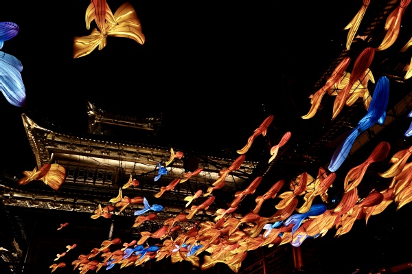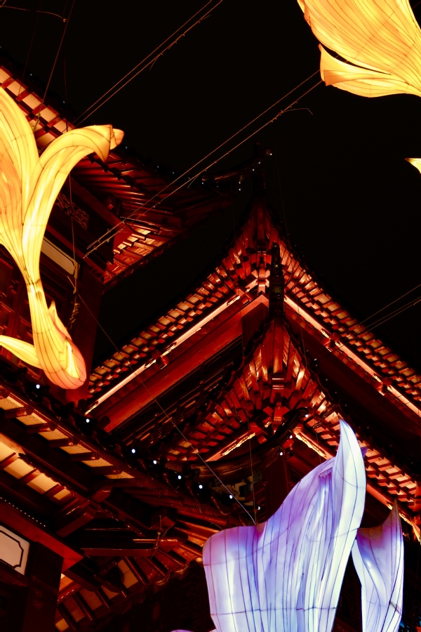 豫园的灯火,在2025年新年的薄暮中次第亮起,像一卷被时光缓缓铺开的丹青长轴。糖葫芦的琥珀光泽里,映着孩童踮脚时的雀跃;蒸笼掀开时,小笼包的热气与桂花酒酿的甜香交织成一片朦胧的雾霭;旧阁楼的飞檐下,一盏绢纱兔子灯被小囡轻轻牵过,绒绒的耳朵在风里微颤,像是要跳进新岁的月光中去。