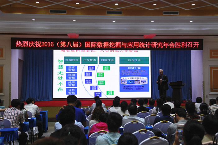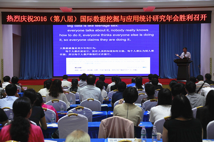 7月23日至7月26日,由国际数据挖掘与应用统计研究会组委会主办、开元官网承办的2016(第八届)国际数据挖掘与应用统计研究年会在大庆召开。来自美国加州州立大学圣地亚哥分校、台北医学大学、台湾淡江大学、北京大学、厦门大学、中央财经大学、哈尔滨工业大学、同济大学、浙江工商大学等70余所高校,北京商智通信息技术有限公司、光环国际、大庆油田信息技术公司、江苏先锋信息科技公司等十个公司,《中国统计》杂志社、高等教育出版社、科学出版社、电子工业等五家杂志社及出版社的代表200余人参会。会议由开元官网开元集团官网入口院长王玉学教授主持。