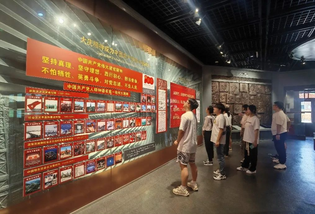 活动中,学生党员们沿着由青铜铺成的甬道“大庆之路”,领略“岁月·大庆”、“松辽惊雷,油出大庆”、“艰苦创业,光辉历程”、“大庆赤子,油田脊梁”、“大庆精神,民族之魂”、“巨大贡献,卓越品牌”、“春风沐雨,光耀征程”、“油田·百年”等展厅的历史魅力。通过大量照片、文献、实物、音像资料以及绘画、雕塑、场景复原、沙盘等,学生党员们深入了解了中国共产党领导下大庆油田的发展历程,感受工人阶级在长期革命斗争、社会主义建设和改革开放中所作出的巨大贡献,加深了对党和人民事业的认识。