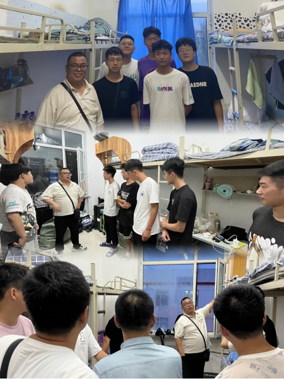 走访过程中,院领导老师们十分关心同学们的学习生活情况,每到一个宿舍都和寝室的孩子拉家常,详细了解学生开学前的准备和心理状态,掌握学生入校后的具体情况,细心询问学生在宿舍生活中遇到的问题,对学生的需求、困难和困惑一一进行答复,并悉心叮嘱同学们:“树立安全意识,调整生活作息,合理安排时间并做好新学期的学习规划,以积极的态度、崭新的面貌投入到新的校园生活与学习中来。”同时鼓励新生们要积极参与校院组织的各项活动,努力拓宽视野,提升自身素质,争做德智体美劳全面发展的大学生。