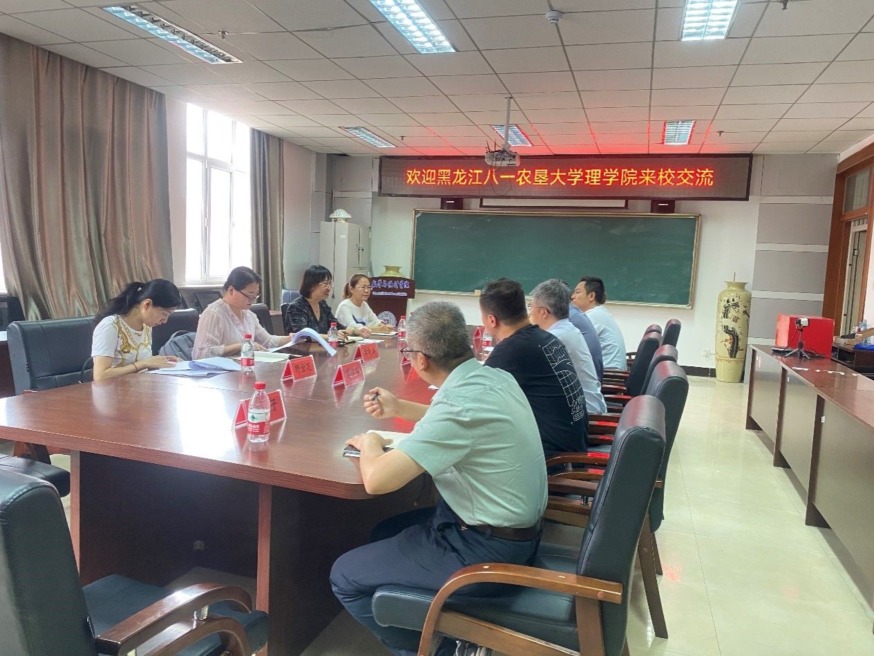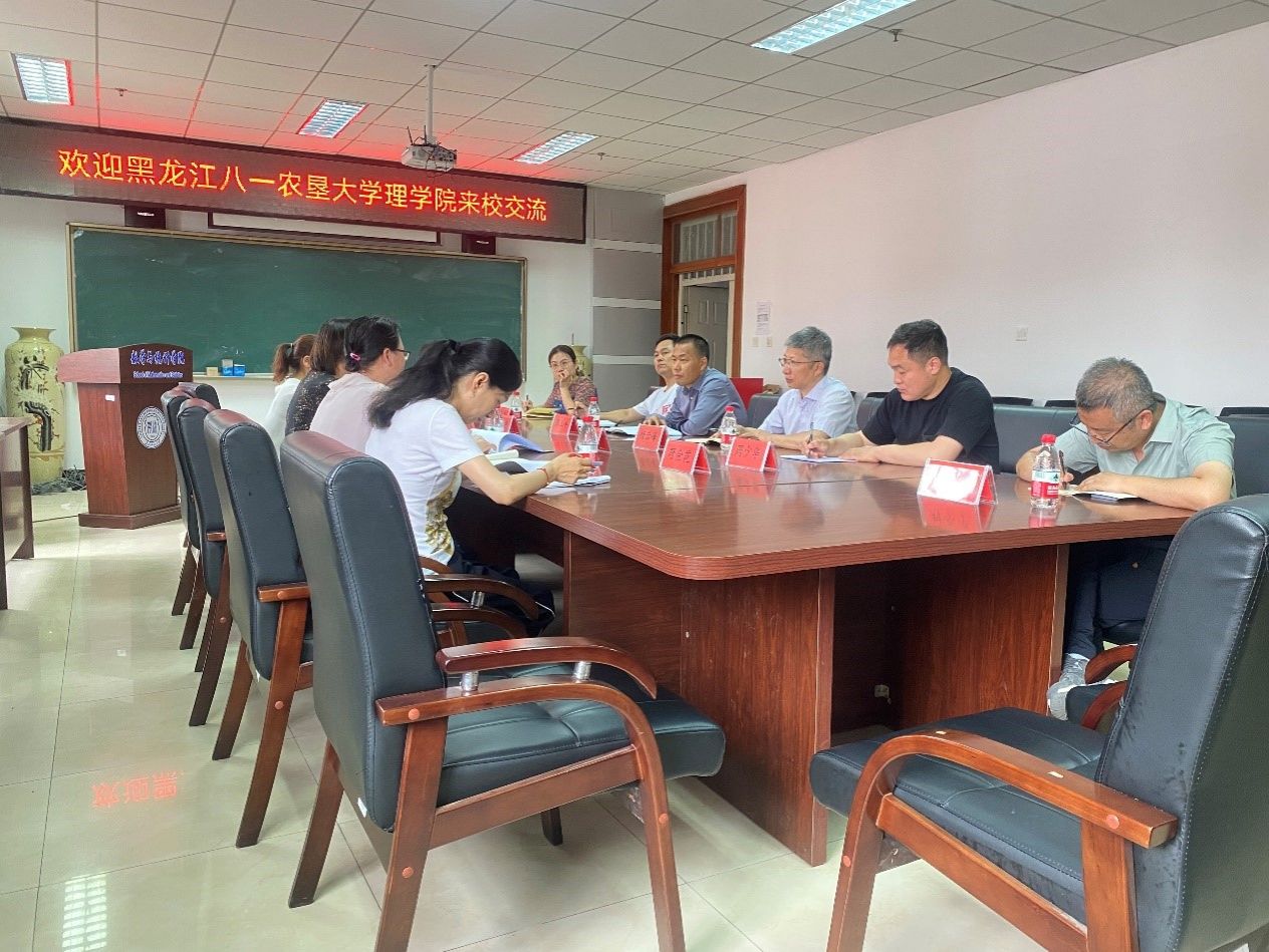 郭立丰对黑龙江八一农垦大学理学院一行的来访交流表示热烈欢迎,并详细介绍了学院专业设置、学科队伍建设、学生培养、学生就业方向等方面情况。信计系主任高伟对所在专业人才培养方案进行了全面的介绍。两院分别结合工作实际,就本科教育教学审核评估迎评准备环节、线上评估及专家入校等工作做了深入细致的交流。