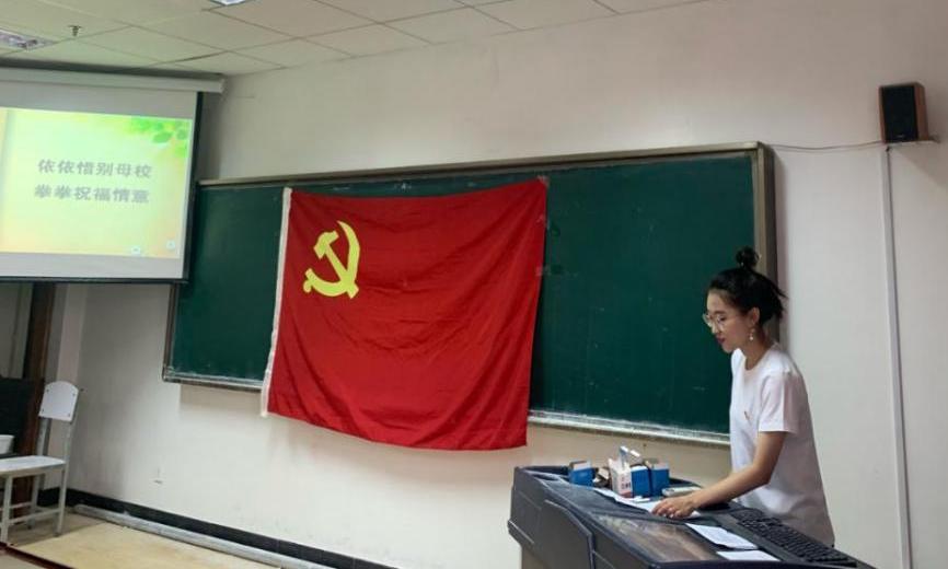 活动第四项,党支部书记李雨作为党员代表对毕业生送祝福。李雨同志首先感谢了各位书记、领导的莅临。接下来感谢各位党员对自己工作的支持与配合,同时表达了自己对毕业生党员的不舍,并对各位毕业生送上了自己的美好祝愿,祝愿毕业生党员能够点亮理想之灯,照亮美好前程。