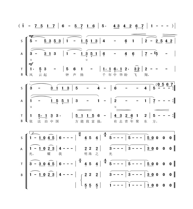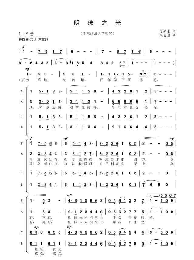 莫忘,莫忘,莫忘,莫忘,祖国未来担肩上,耀我明珠之光。