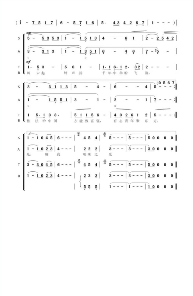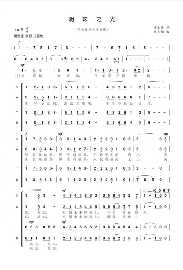 第六十九条 学校的校歌是《明珠之光》(附后)。